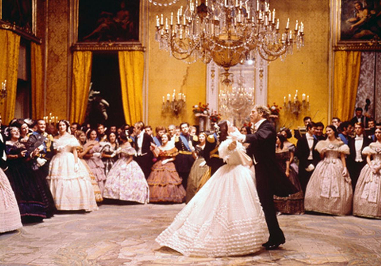 The ballroom scene from The Leopard The film is bracketed by two operatically staged events: the battle scenes in Palermo, ending in Garibaldi’s victory, and the grand ball towards the film’s end. Both are presented in blazing, artificial colors. The first, the explosive birth of a society; the second, a dimming universe. Lancaster is particularly affecting at delivering the feel of one being drained of vital fluids. The decadence and decline of the feudal class is emphasized throughout the ball’s long sequence. Looking upon a group of young women acting foolishly, Fabrizio remarks that “frequent marriages between cousins does not improve the stock.”