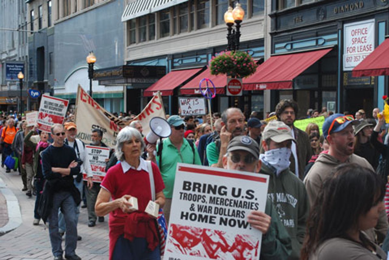 Several thousand people marched through downtown Boston last Saturday afternoon as part of the October 15 Boston Antiwar Rally. Although not officially endorsed by Occupy Boston, many participants of the Boston protest joined in the march.