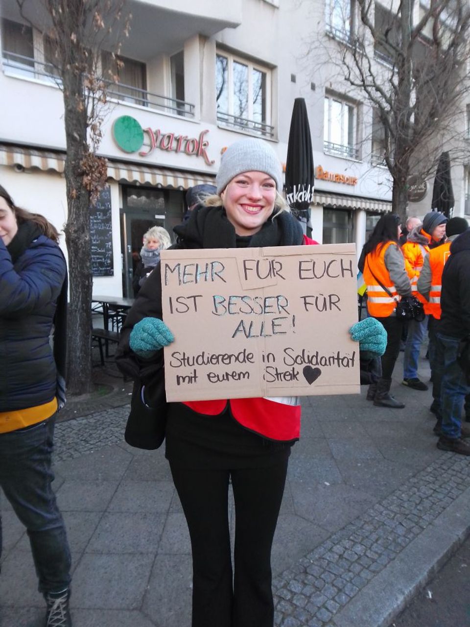 Many students are supporting the strikes and participated in the rally. Tabea, who studies education, said, “I came to the strike out of solidarity because I am very concerned about the poor working conditions and wages in the public sector and especially in the social sectors. If it goes on like this, everything will go down the drain.”