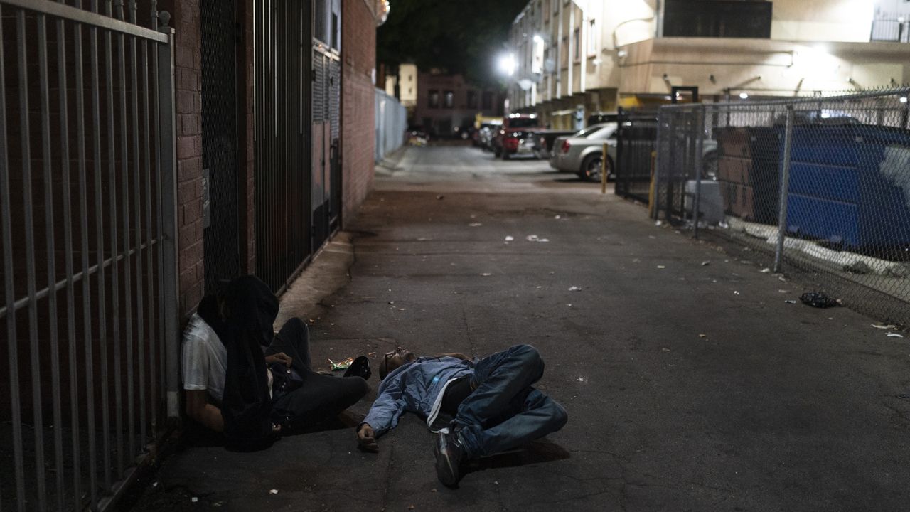 Two homeless people sleep in an alley in Los Angeles, Wednesday, Sept. 21, 2022. [AP Photo/Jae C. Hong]