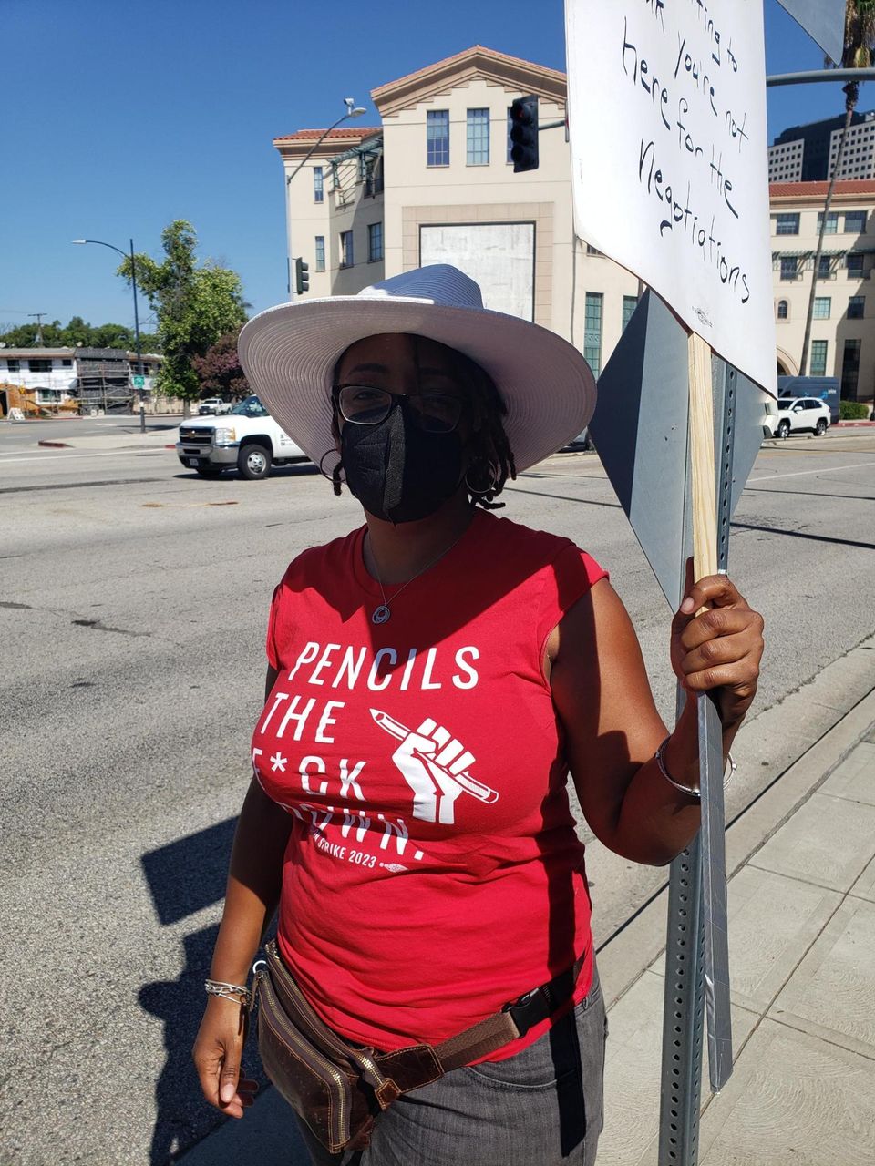 Gloria, a comedy writer, shared her insights. “I’m here because I want people to be able to have a future as writers. I was privileged and lucky enough to get on a network show, so I had 40 weeks of work, and that was something sustainable. I look at people who are in small mini-rooms just working for a couple of weeks here and there—it’s not a sustainable living. I’m here because I believe we should be able to be creative people and earn a living and be able to take care of our families and things like that.”