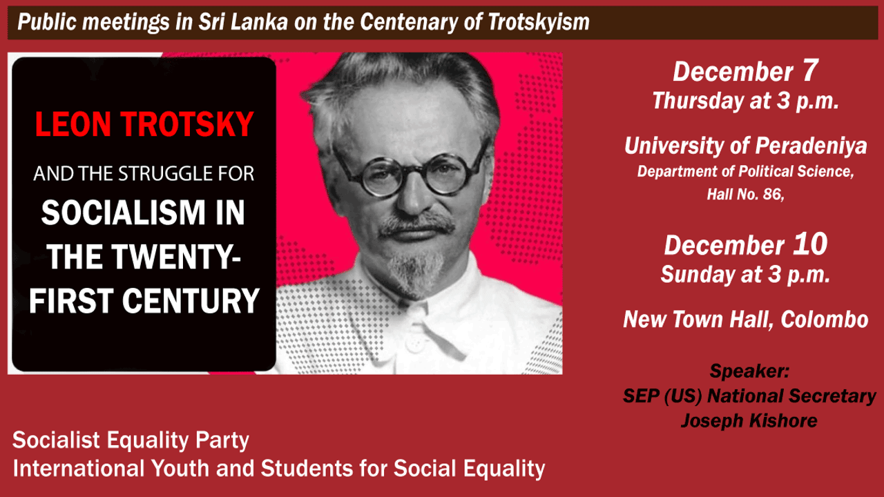 Two meetings entitled “Leon Trotsky and the Struggle for Socialism in the 21st Century” will be held at Peradeniya University on December 7 and in Colombo on December 10. The first meeting is sponsored by the Political Science Association of the university. Kishore will discuss the contemporary significance of the struggle of the Trotskyist movement for the principles of international socialism.