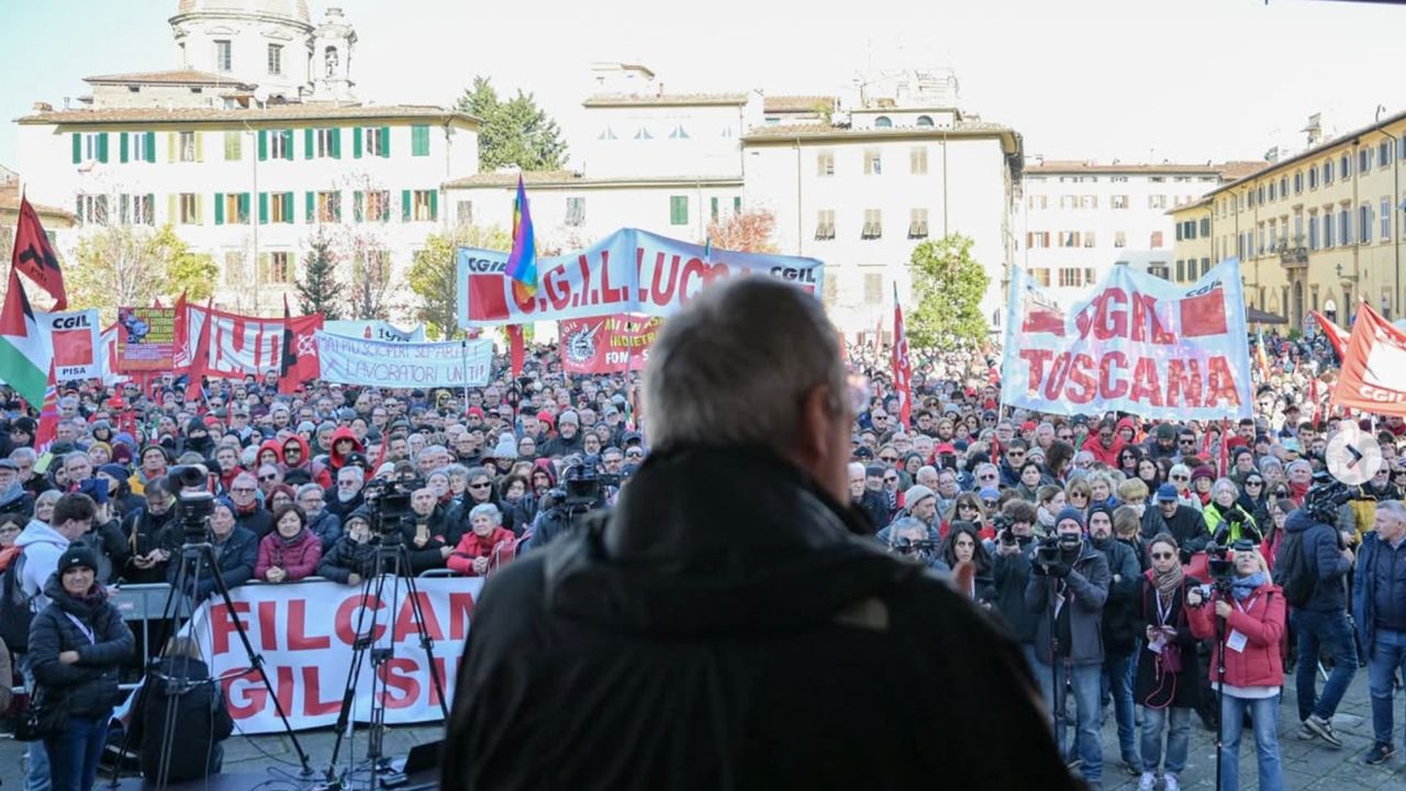 In Florence, Landini denounced the Budget Law as “cutting health care, education and salaries while investing in military rearmament” and acknowledged that the government is “limiting the right to strike.” Yet his proposal was a pathetic plea for “a progressive tax system and a solidarity contribution from the richest.”