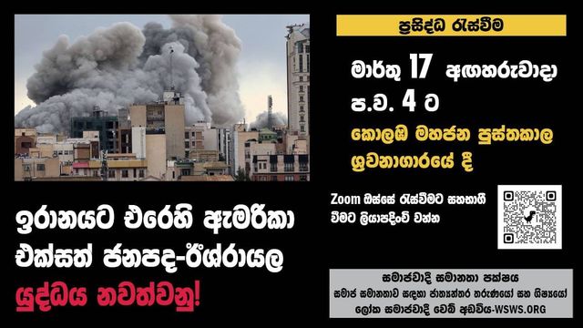 සසප/සසජාතශි කොලඹ දී පවත්වන ප්රසිද්ධ රැස්වීම: ඉරානයට එරෙහි ඇමරිකා එක්සත් ජනපද-ඊශ්රායල යුද්ධය නවත්වනු!