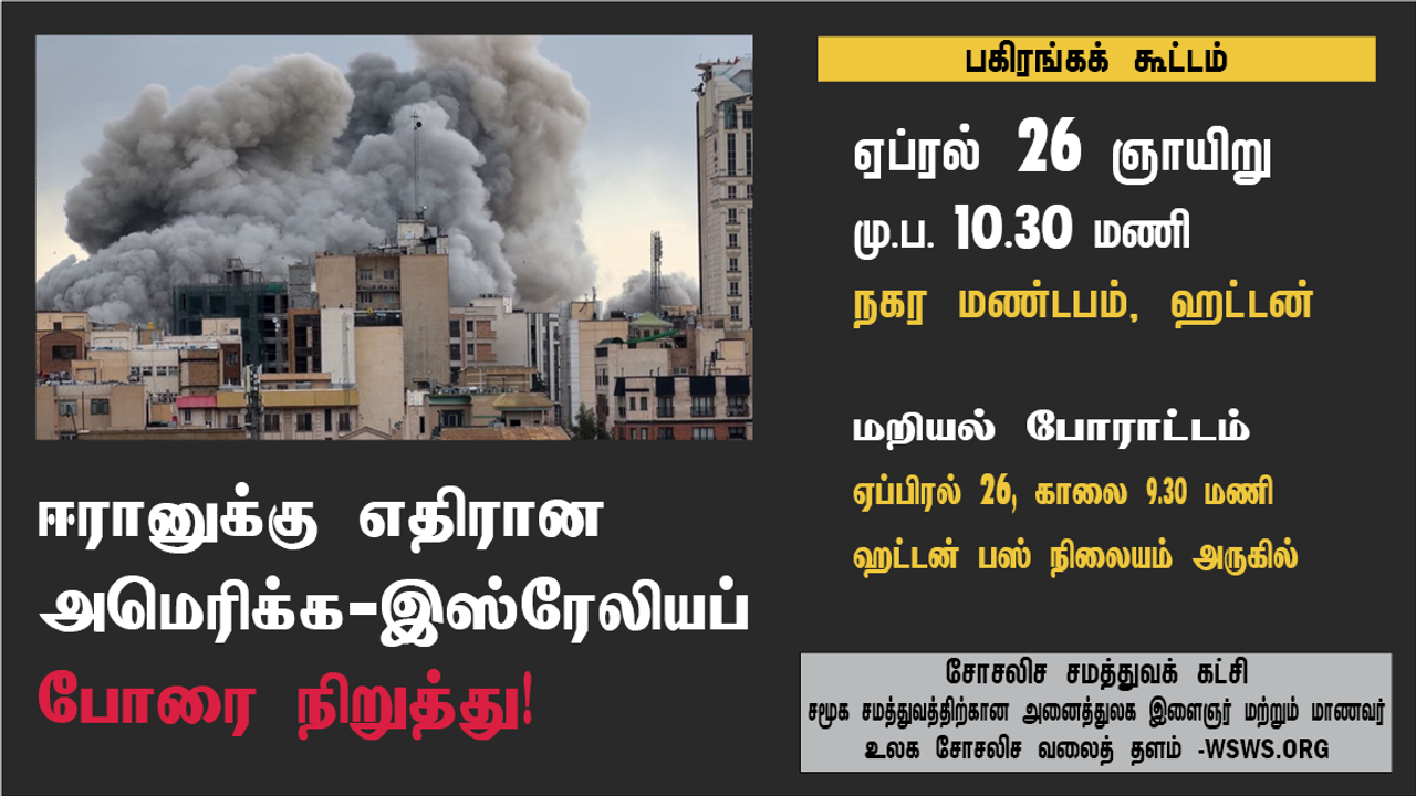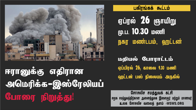 ஏப்ரல் 26 அன்று ஹட்டனில் நடைபெறும் இக்கூட்டத்தில், அமெரிக்க ஏகாதிபத்தியத்தின் உண்மையான நோக்கங்கள், விரிவடைந்து வரும் போரில் இலங்கை ஆளும் வர்க்கத்தின் உடந்தை மற்றும் போரை எதிர்த்துப் போராடுவதற்கு மேற்கொள்ளப்பட வேண்டிய சோசலிச மூலோபாயம் பற்றியும் கலந்துரையாடப்படும்.