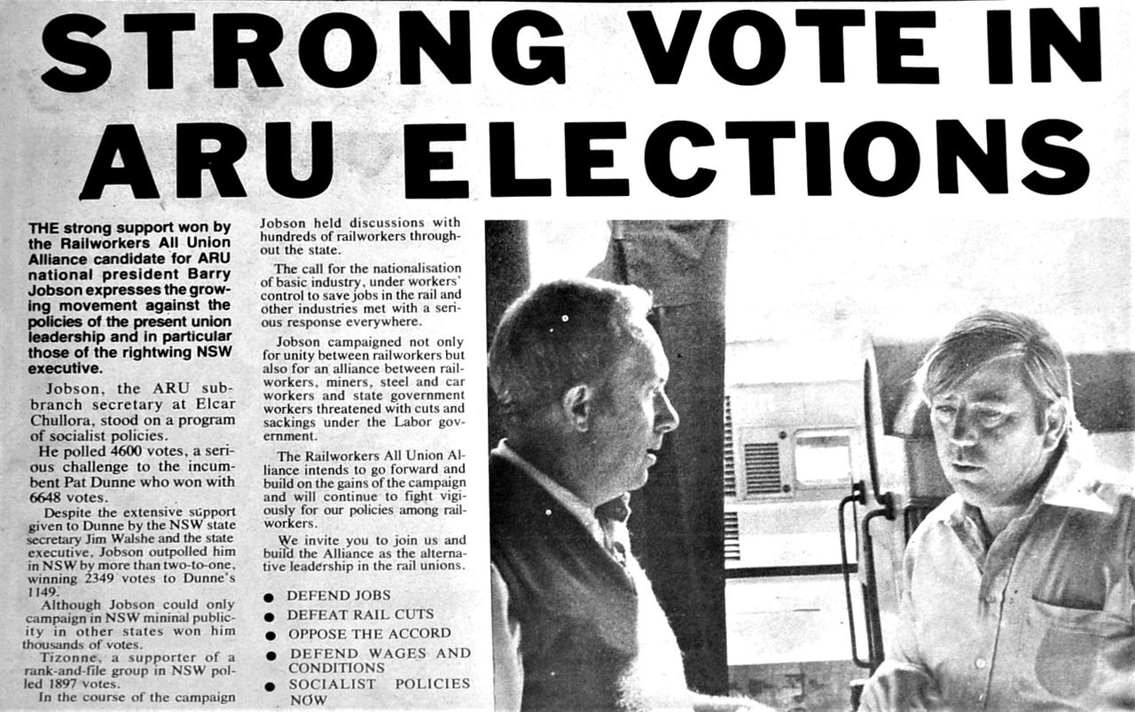 Troçkistlerin muhalefetinin ne ölçüde destek kazanmaya başladığı, Barry’nin 1984’te Avustralya Demiryolları Sendikası’nın (ARU) genel başkanlık seçimlerinde, sağcı yönetim tarafından desteklenen Pat Dunne’ye karşı aday olmasıyla ortaya çıktı.